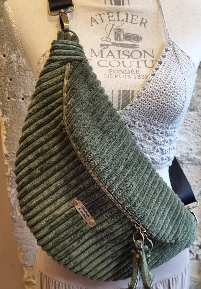 Sac banane tissu velours grosses côtes, réalisation sur commande